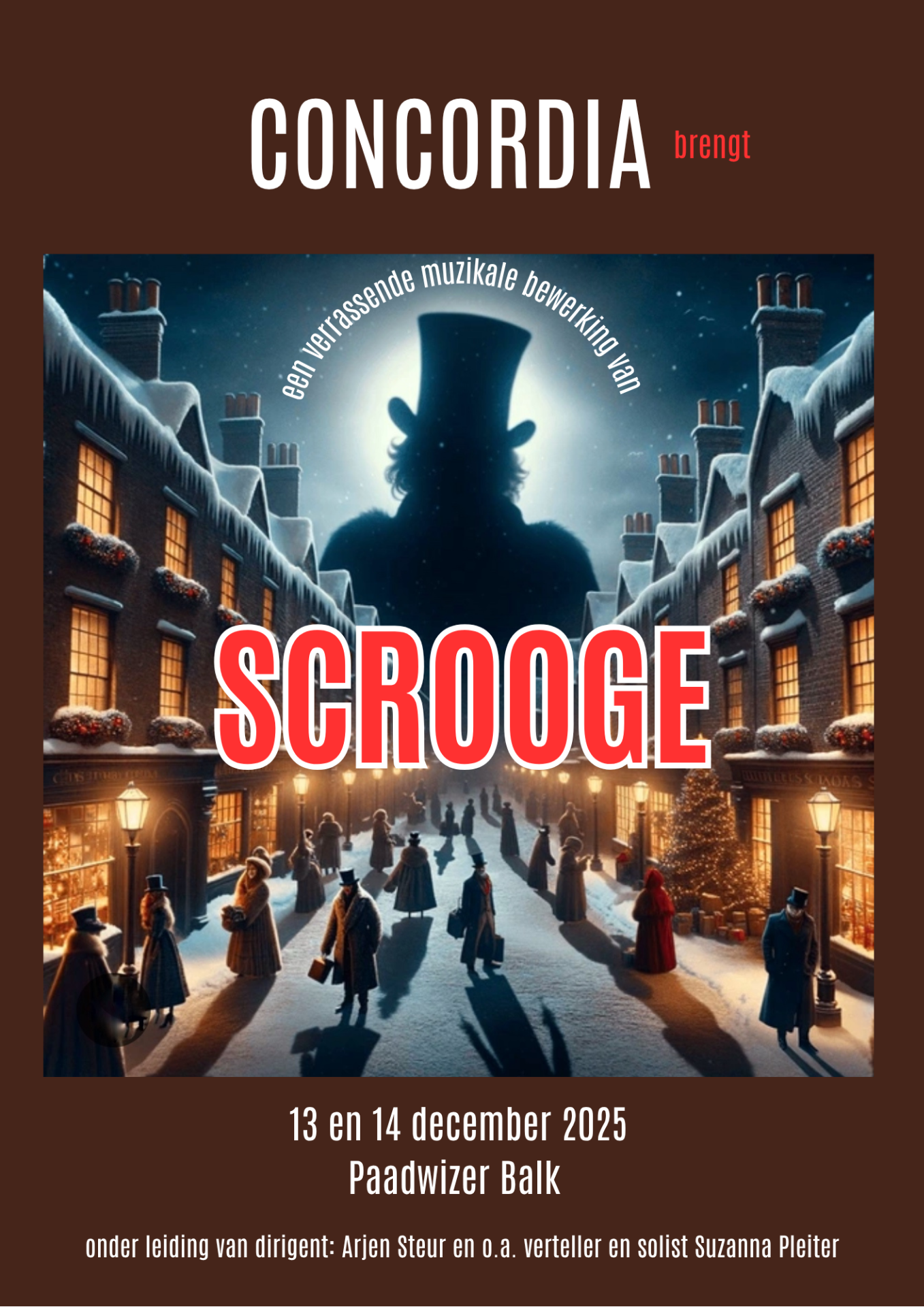 Al ruim 130 jaar is Streekharmonie Concordia een begrip in de regio. Concordia luistert menig concert en gelegenheid op met prachtige harmonieën. In december brengt Concordia het bijzondere event Scrooge. Verteller en solist is de in Balk opgegroeide musical actrice Suzanna Pleiter. Daarnaast spelen en zingen getalenteerde lokale acteurs de rol van Scrooge, zijn medewerker Bob, zijn vrouw en de 3 geesten. Ook de kinderen van ons jeugdorkest de Muzykmaten blazen en acteren deels mee. De avond staat onder de muzikale leiding van dirigent Arjen Steur. De concert locatie is de Paadwizer in Balk, die voor deze gelegenheid wordt omgetoverd in Dickens stijl.